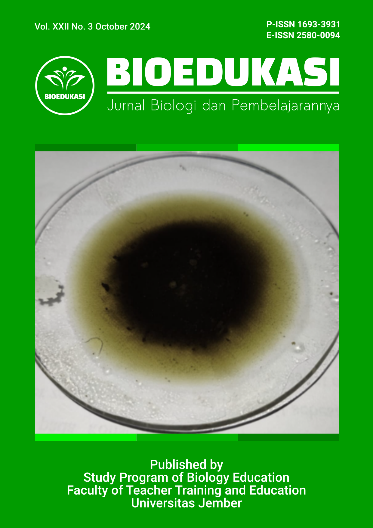 BIOEDUKASI: Journal for Biology and Biology Education (E-ISSN: 2580-0094, P-ISSN:1693-3931) is a peer-reviewed and open access journal that publishes significant and important research from all areas of biology and biology education fields such as biology curriculum, teaching biology, instructional media, and evaluation, botany, zoology, microbiology, genetics, physiology, conservation, and medical sciences. Each volume contains 8 to 15 articles.