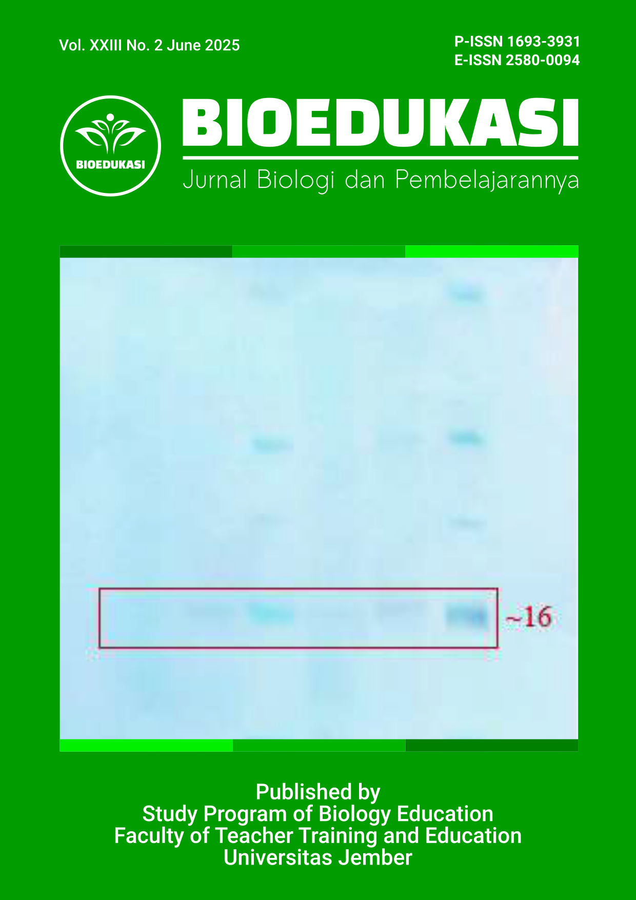 BIOEDUKASI: Journal for Biology and Biology Education published by Study Program of Biology, University of Jember, Indonesia. We accept submission from all over the world. Our Editorial Board members are prominent and active international researchers in biology and biology education fields who ensure efficient, fair, and constructive peer-review process. All accepted articles will be published on payment of an article-processing charge, and will be freely available to all readers with worldwide visibility and coverage.